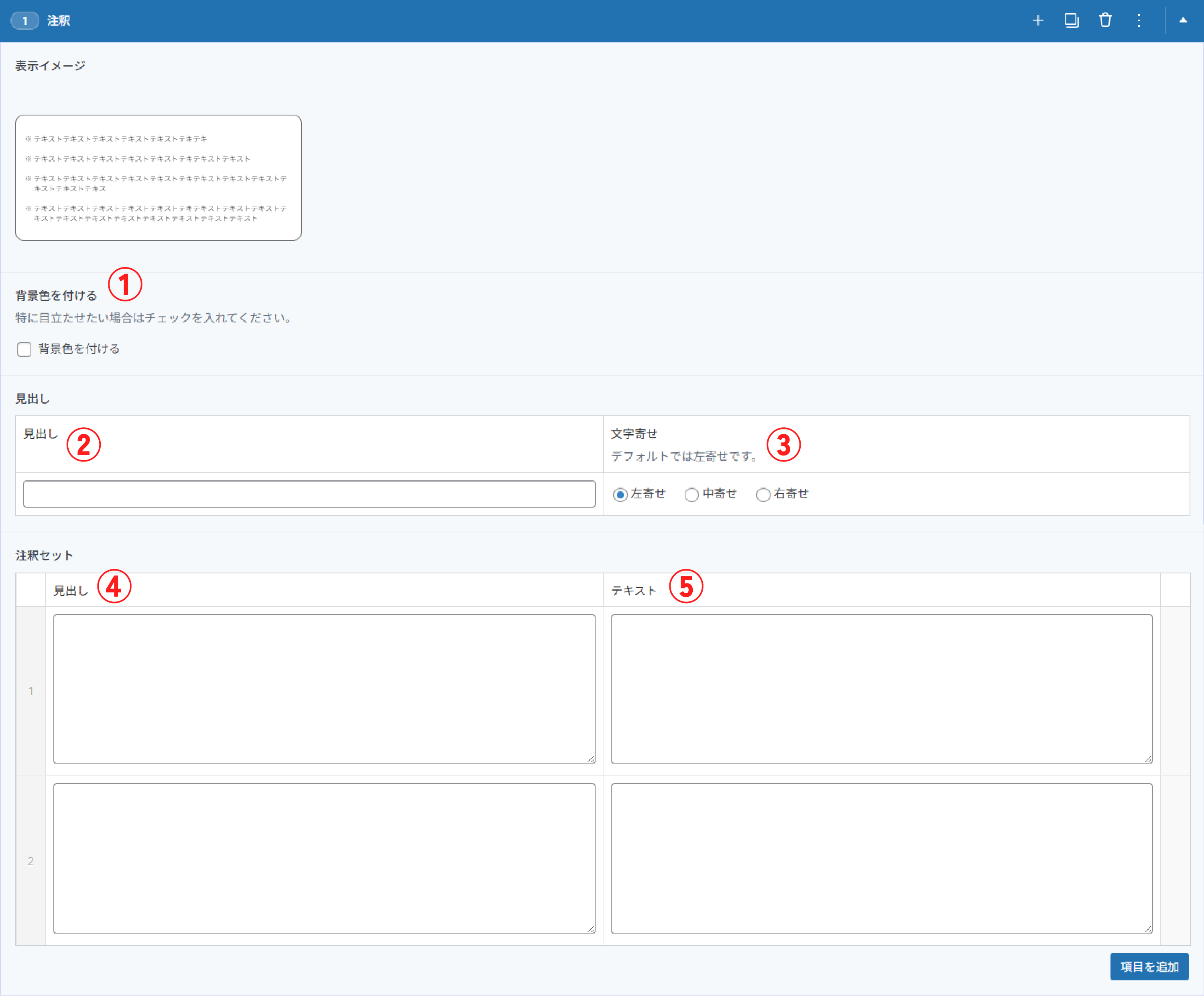 見出しの表示位置を、左寄せ、中央寄せ、右寄せから選択して設定できます。
