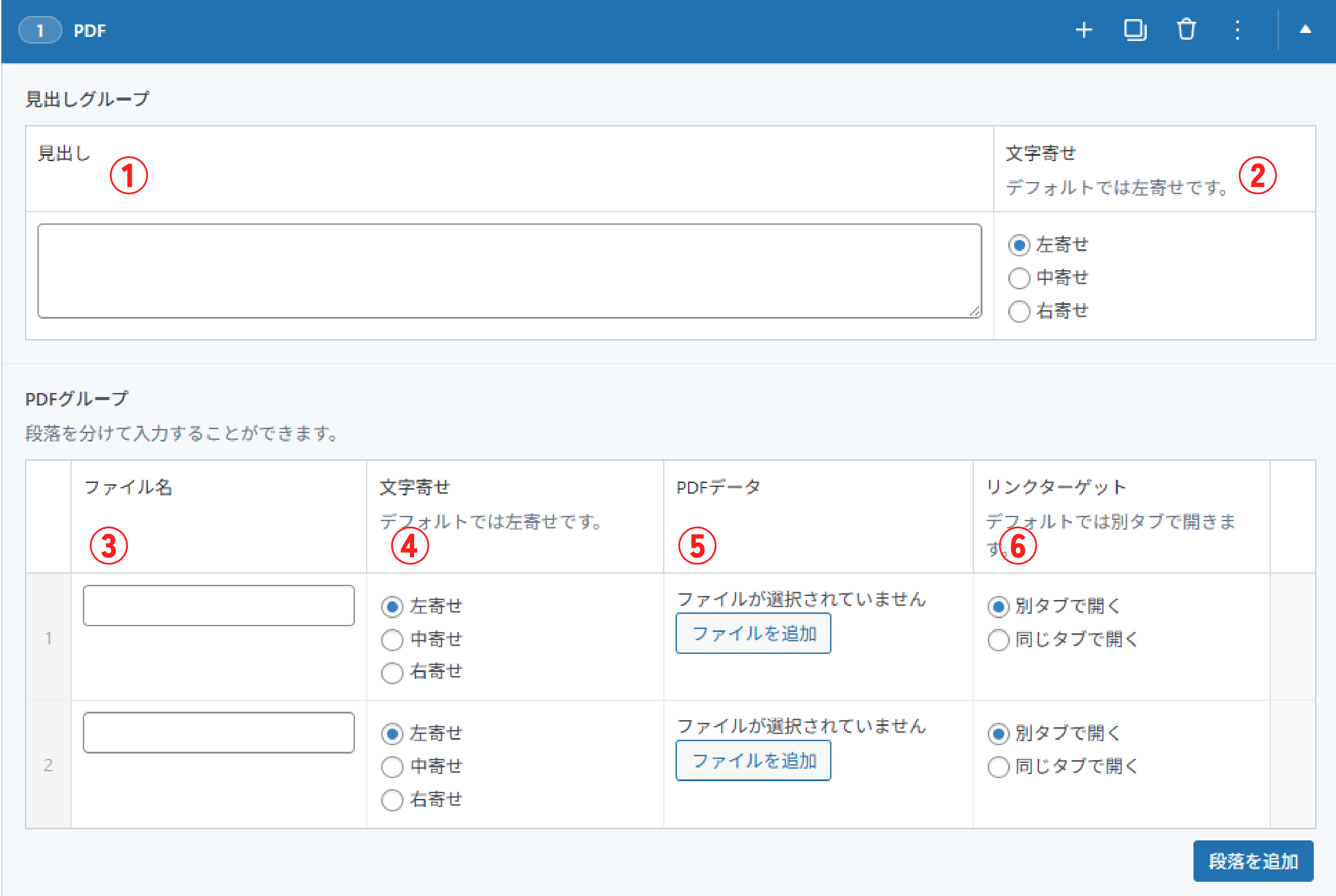 【PDFファイルの設定】